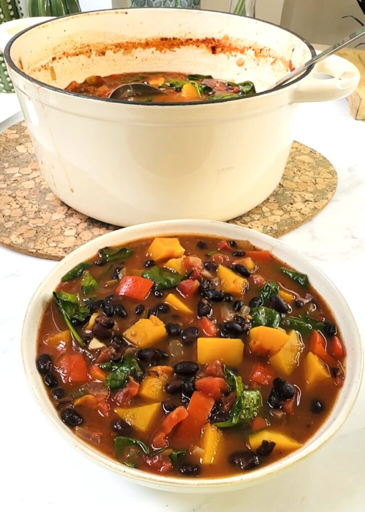 It’s one I make fairly often in the autumn and winter months. I love the combination of ingredients and the fact it’s very hearty and warming. The butternut squash and black beans pair really well with the combination of spices I use. You can adjust them if you like your soups a bit less spicy, but I think they are warming without being too hot.