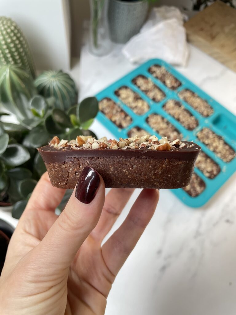 These energy bars are full of whole foods and are refined sugar free. Combined with hazelnuts, they taste a bit like a good for you Ferrero Rocher!