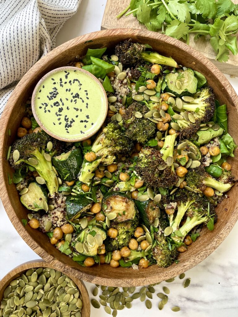 Broccoli is nutrient-dense and packed with vitamins C, K, and A, along with fibre. It’s great for your immune health, helps with digestion, and is also good for detoxification too. I like to think of it as a real superfood. When it’s roasted it adds a lovely crunchy texture to this salad.
